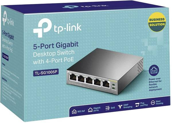 The TL-SG1005 P includes five 10/100/1000 Mbit/s ports, four with PoE, and he does not require any configuration or software installation. The device detects and automatically feeds connected PoE-terminals. Thus, both the data transfer as well as the power supply via a single cable is ensured. The network expansion significantly easier.